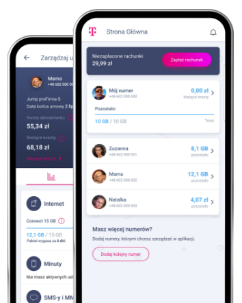Dodawaj nowe numery, aktywuj usługi, sprawdzaj bieżące koszty i zużycie danych. To łatwe.
