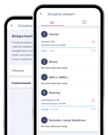 Monitoruj stan zużycia paczek danych, wysłanych SMS-ów i wykonanych połączeń, by w razie potrzeby dodać nowe pakiety.