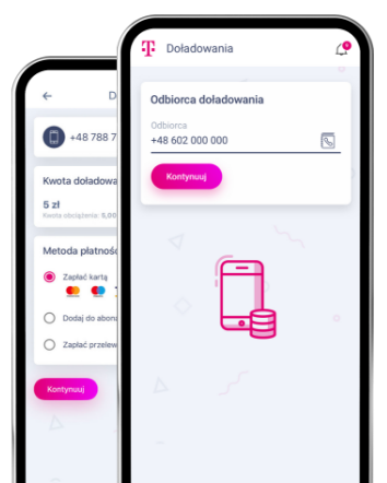W prosty sposób doładuj numer na kartę bezpośrednio z aplikacji - zapłać kartą, przelewem bądź dodaj kwotę do swojego rachunku.