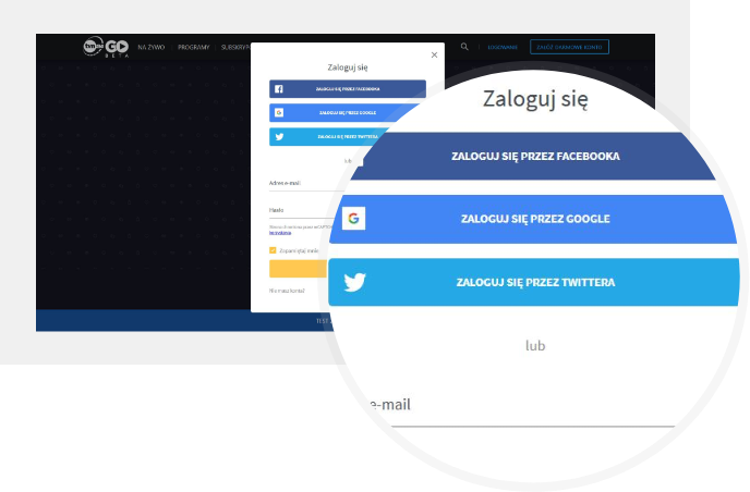 Zaloguj się używając swojego konta na Facebooku, Google lub Twitter. Pamiętaj, że możesz także zalogować się korzystając z adresu e-mail i hasła, które podałeś podczas rejestracji.