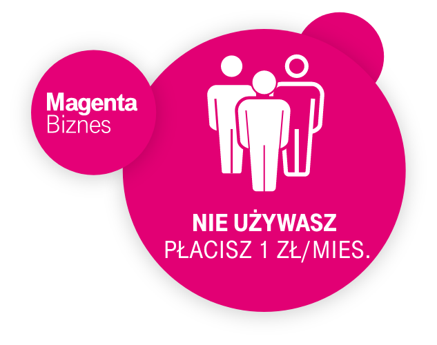 Maksymalna prędkość wynika z wybranego przez abonenta planu taryfowego. Opłata 1 zł za dodatkową kartę może obowiązywać od 7. pełnego Cyklu Rozliczeniowego korzystania z danej karty. Szczegóły w WOP z urządzeniem i bez urządzenia: „MagentaBIZNES Internet”, „MagentaBIZNES Kontrakt podstawowy”, „MagentaBIZNES Kontrakt Dodatkowy” oraz Regulaminie Usługi Telekomunikacyjnej „Internet Biznes”. Możliwość dokupienia urządzenia w momencie podpisania umowy lub od 7. cyklu Rozliczeniowego. Szczegóły w WOP z urządzeniem: „MagentaBIZNES Kontrakt Podstawowy – Dosprzedaż urządzenia”, „MagentaBIZNES Kontrakt Dodatkowy – Dosprzedaż urządzenia” i „MagentaBIZNES Kontrakt Internetowy – Dosprzedaż urządzenia” i w dedykowanych cennikach telefonów.