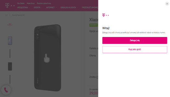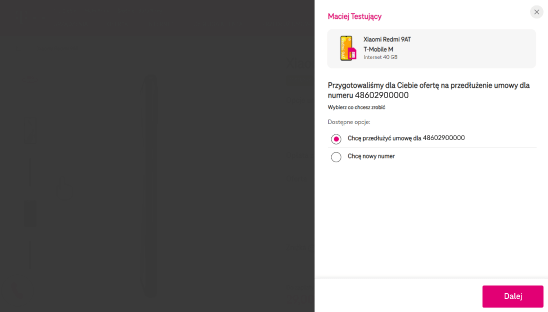 Może się tak zdarzyć, że wybrana przez Ciebie oferta nie jest dostępna dla Twojego numeru (oferta wygaszona po zalogowaniu) - zapoznaj się wówczas z ofertą przygotowaną specjalnie dla Twojego numeru. Pamiętaj, że w takiej sytuacji musisz ponownie wybrać ofertę i urządzenie, aby dodać je do koszyka.