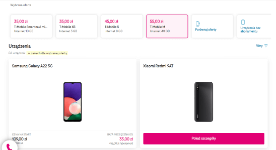 Wybierz ofertę, którą jesteś zainteresowany oraz urządzenie, jeśli chcesz przedłużyć umowę z nowym smartfonem.