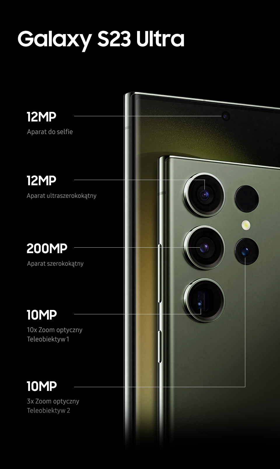 Odkryj nową serię Galaxy S23. Dziel się niezwykłymi momentami dzięki wyrazistej fotografii nocnej. Ciesz się rozrywką do woli, korzystając z mocnej baterii i potężnego procesora. Twórz i wyrażaj siebie bez przeszkód, z pomocą wbudowanego rysika S Pen w Galaxy S23 Ultra.