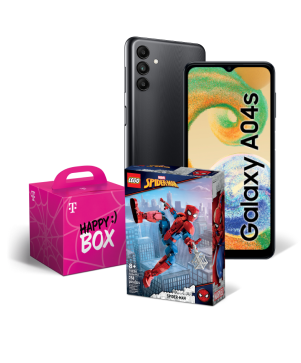 Ceny promocyjne dotyczą zestawów Happy BOX w ofercie „Na doładowania z telefonem”. Zestaw Happy BOX zawiera smartfon oraz klocki LEGO Marvel Figurka Spider-Mana. Zestawy Happy BOX dostępne do wyczerpania zapasów. Prezentowany w tabeli „Internet z bonusem” dotyczy gigabajtów otrzymanych w ramach usługi „Internet”, „Internet za zgody marketingowe” oraz ich podwojenia w ramach Bonusu - GB po doładowaniu, w czasie określonym umowy. Bonusowe gigabajty zostaną przyznane po każdorazowym doładowaniu konta kwotą minimalną lub jej wielokrotnością. Bonus będzie ważny 31 dni od daty przyznania. Pakiety odnawiają się automatycznie co miesiąc. Za korzystanie ze wszystkich elementów składowych oferty pobiera się łączną opłatę wskazaną w tabeli. Bonus do 4 miesięcy bez opłat dotyczy umowy zawartej z równoczesnym przeniesieniem numeru od innego dostawcy usług. Okres zawieszenia doładowań w ramach umowy wynosi maksymalnie 120 pierwszych dni umowy do czasu realizacji procesu przeniesienia numeru lub do jego zakończenia. 1200 GB ekstra przez rok to maksymalnie 12 Pakietów po 100 GB do wykorzystania do końca umowy terminowej, licząc od aktywacji pierwszego Pakietu. Pakiety po 100 GB będą przyznawane co miesiąc wraz z Pakietem Usług właściwym dla Abonenta pod warunkiem utrzymania aktywnego Pakietu Usług lub zapewnienia środków na koncie na jego przedłużenie. Abonent może samodzielnie aktywować usługę „GB na dłużej z Rok Internetu” w aplikacji Mój T‑Mobile w ciągu 31 dni od daty zawarcia Umowy/Aneksu. Szczegóły w Warunkach Oferty Promocyjnej oraz „Cenniku urządzeń dla Ofert na doładowania” na www.t-mobile.pl