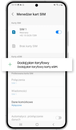 Twój telefon Galaxy S22 zawiera kartę eSIM, która funkcjonuje jako karta SIM. Po aktywacji karty eSIM lub instalacji karty nano-SIM możesz korzystać usług sieci komórkowej. Aby aktywować kartę eSIM, wykonaj następujące czynności.