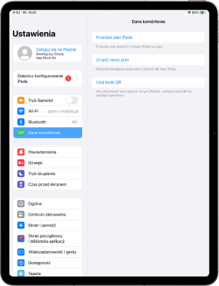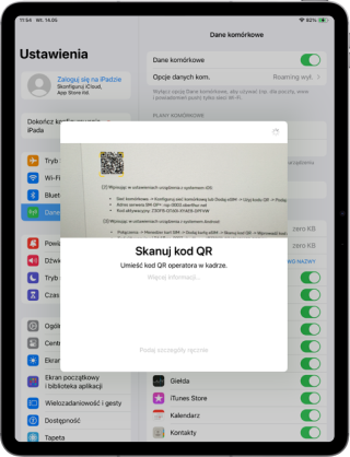 Przejdź do Ustawień i wybierz Dane Komórkowe. Wybierz Użyj kodu QR.
