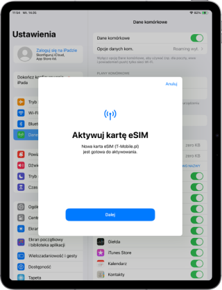Informacje o Twoim profilu eSIM są przesyłane do eSIM w Twoim urządzeniu. Ponieważ profil eSIM, który