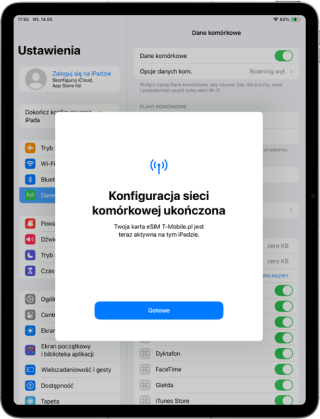 Wybierz Gotowe. Karta eSIM jest zainstalowana.