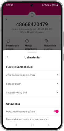 Przejdź do Ustawień i wybierz widoczną pozycję "Szczegóły karty SIM".