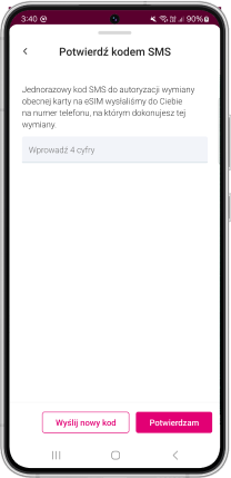 Wpisz kod otrzymany SMS-em na numerze którego kartę SIM chcesz zmienić.