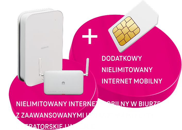 Magenta Biznes Internet Pro to usługa profesjonalnego dostępu do Internetu, wykorzystująca technologię 5G/LTE. Polecana jest przede wszystkim dla Firm poszukujących szybkiego dostępu do sieci w technologii alternatywnej do światłowodu lub radiolinii. Oferowana z urządzeniami klasy operatorskiej w cenie abonamentu oraz dodatkowym nielimitowanym Internetem Mobilnym działającym na terenie całego kraju.