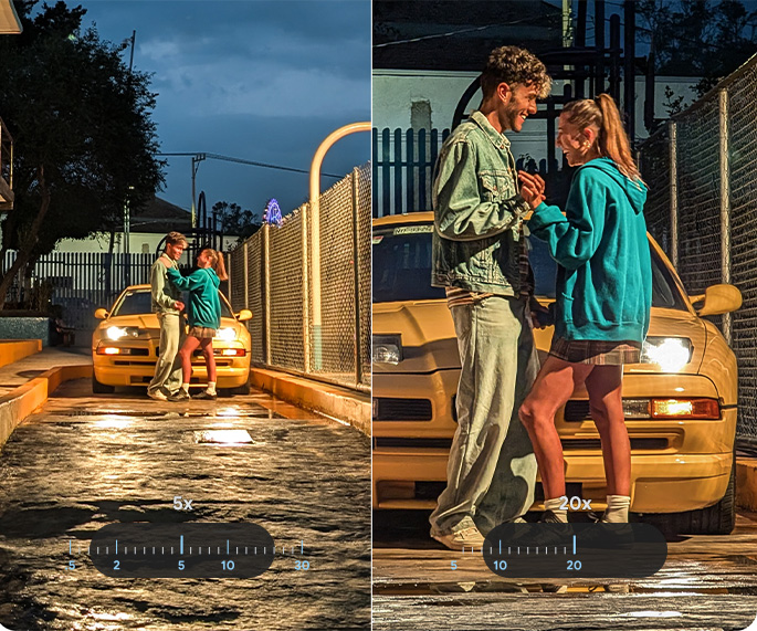 Ulepszony zoom pomoże Ci uzyskać jeszcze większe przybliżenie nawet już powiększonego obrazu. AI poprawi szczegóły i jakość, aby zdjęcie było wyraźne2.