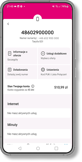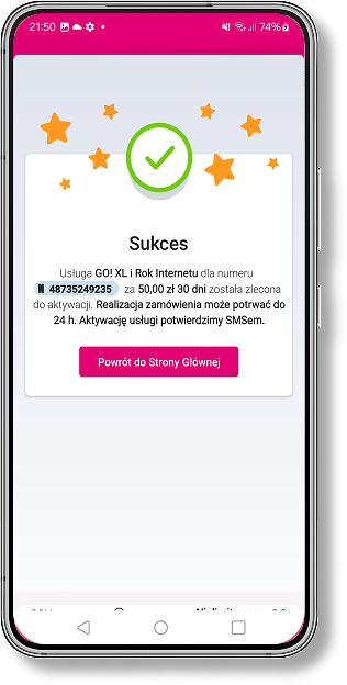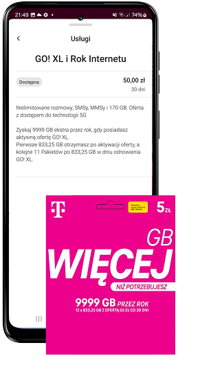Pamiętaj aby doładować konto za 50 zł, aby móc włączyć ofertę GO! XL - najszybciej zrobisz to w aplikacji Mój T-Mobile.