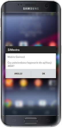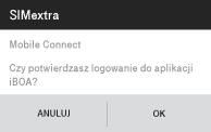Na niektórych modelach telefonów Mobile Connect wzbudza ekran i widoczny jest komunikat do zatwierdzenia. Na innych modelach konieczna jest aktywacja ekranu, aby zobaczyć komunikat. Jeśli została wybrana opcja logowania się do serwisu iBOA na komputerze, pamiętaj, że może być konieczna aktywacja ekranu, aby zatwierdzić operację.